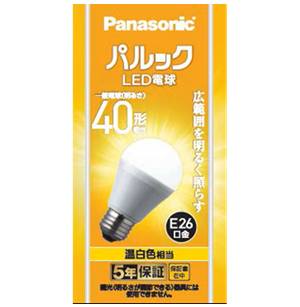 パナソニック LED電球 LDA4WW-G/K4 温白色 60W形相当 広配光タイプ LDA4WWGK4 パナソニック LED電球 LDA4WW-G/K4 温白色 40W形相当 広配光タイプ (11-649756) LED一般電球タイプ 広配光タイプ ◆メーカー◆ パナソニック ◆ 光源色 ◆ 温白色相当・3500ケルビン ◆定格消費電力◆ 4.4W ◆定格入力電流◆ 0.072A ◆ 寸法 ◆ 全長 98mm 外径 55mm ◆ 質量 ◆ 66g ◆ 口金 ◆ E26 ◆全光束◆ 485ルーメン ◆消費効率◆ 110.2m/W ◆定格寿命◆ 40000時間 ◆平均演色評価数◆ Ra80 在庫状態 : 注文可 ¥1,160(税込) 数量 パナソニック LED電球 LDA4WW-G/K4 10個セット 温白色 40W形相当 広配光タイプ 在庫状態 : 注文可 ¥10,700(税込) 数量